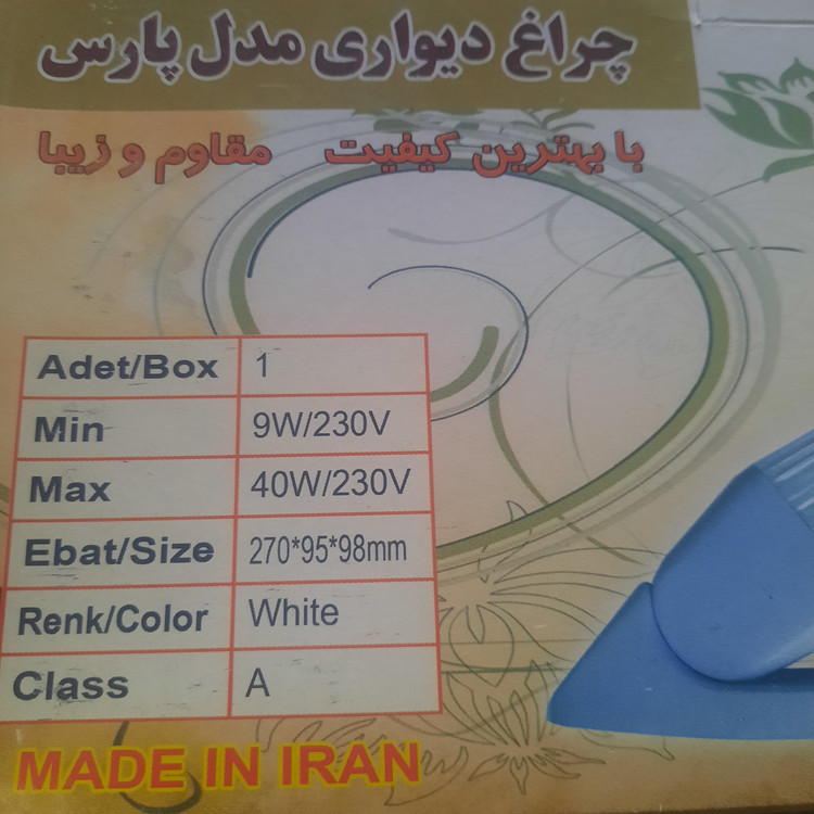 توان مصرفی: قابل استفاده با کلیه لامپ های کممصرف 9w و 26 wو 18wو ۴۰wو 11w