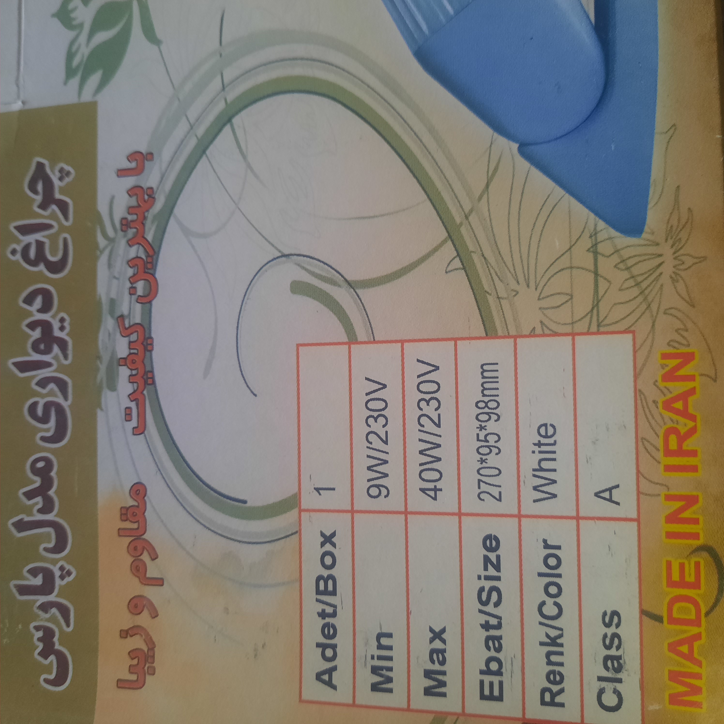 توان مصرفی: قابل استفاده با کلیه لامپ های کممصرف 9w و 26 wو 18wو ۴۰wو 11w